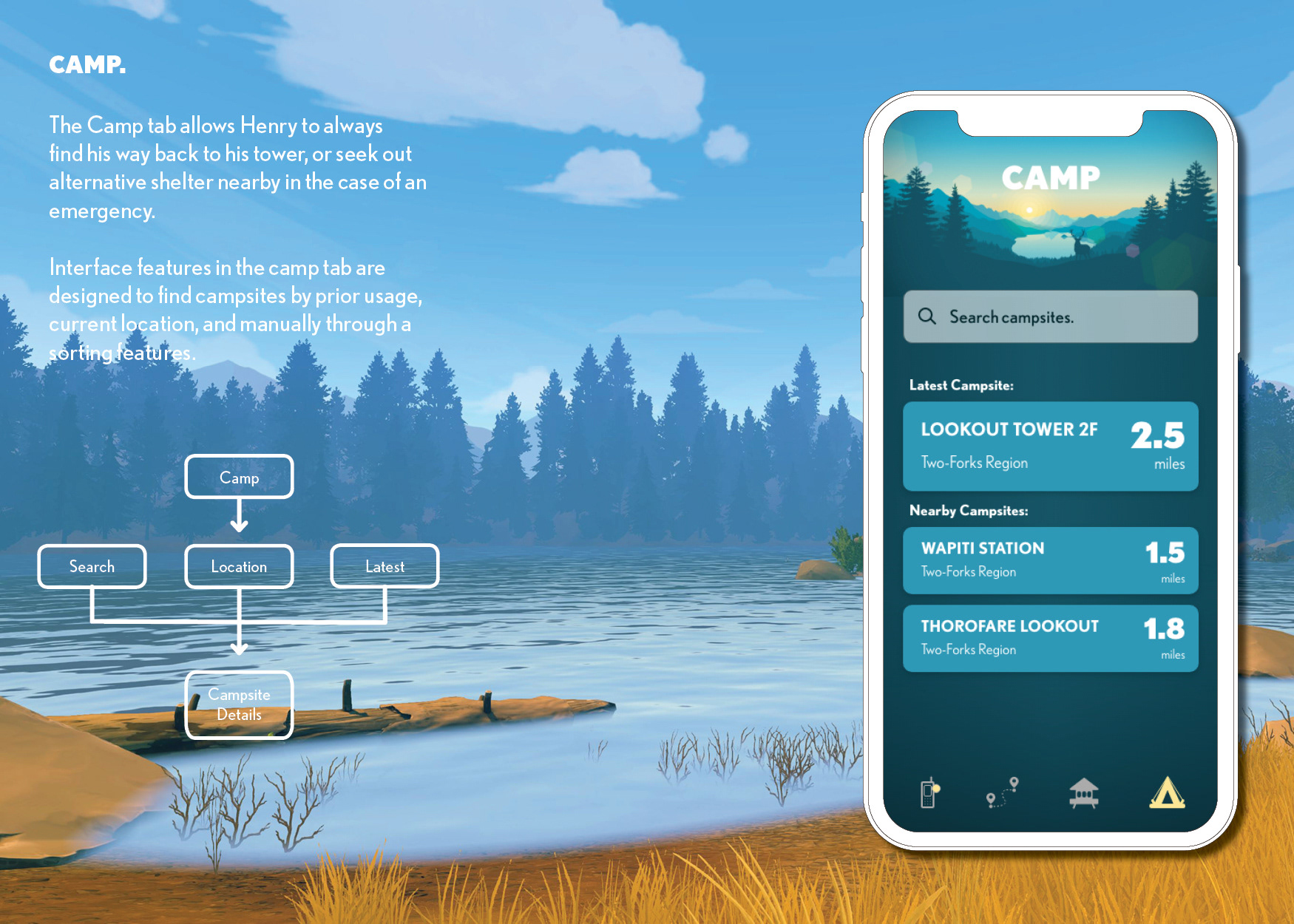 I play a lot of video games. TrailWatch was a quick conceptual design to explore Adobe XD, making use of fan art of the critically-acclaimed (and, admittedly beautiful) game FireWatch.